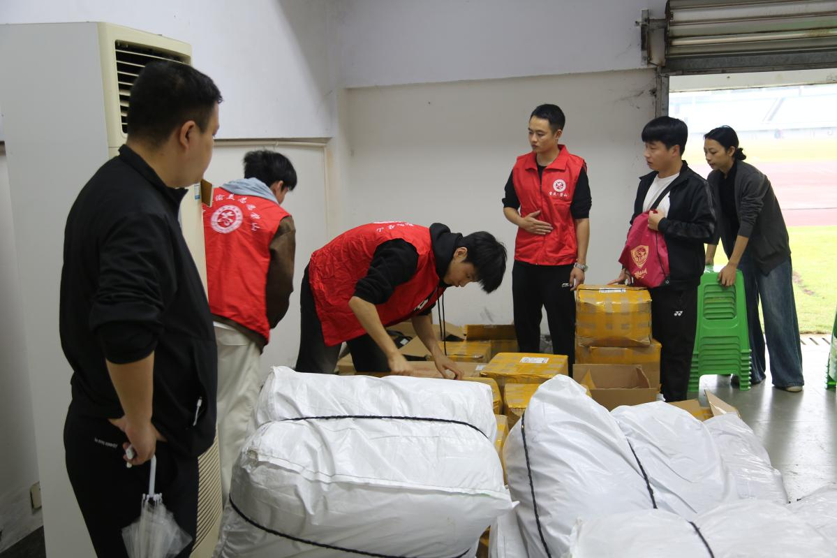 面对此次大型体育赛事的服务需求,“经管先锋”志愿服务队闻令而动,迅速组建了一支精锐的志愿者团队。赛前,志愿者们接受了系统的岗前培训,深入学习了大客流引导、突发事件应对及赛事专用物资管理规范,确保人人明晰岗位、熟稔流程,以最佳状态迎接挑战,展现了经管学子严谨求实的专业素养。赛事服务是对志愿者担当精神的最好检验。赛前,志愿者们已提前进入“战斗状态”,顺利完成物资的分拣与派发。比赛当天,从阴雨朦胧的午后到傍晚,30名“经管先锋”的身影始终坚守在赛场每个角落……那一片片“先锋红”,在迷蒙的雨幕中跃动,汇聚成驱散寒意、温暖全场的青春火焰。